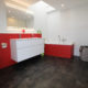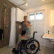 Die hindernisfreie Dusche lässt den Raum optisch,
